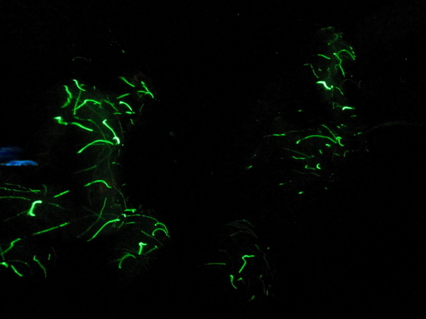 the image is black and green light are seen |