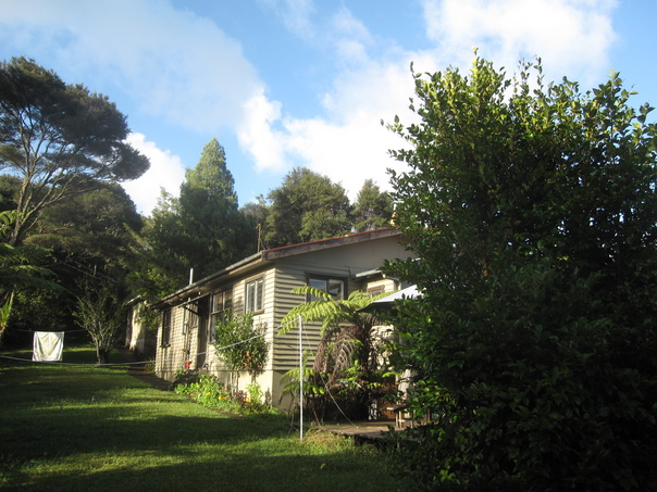 The house has a clothes line in the yard so the people can dry their clothes. |