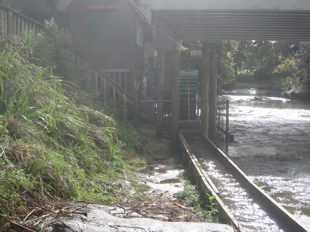 This is a pretty water mill on the river. |