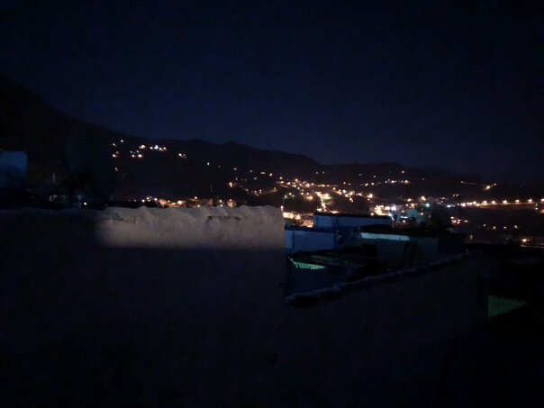 It's called this because most of the houses are painted a light shade of blue, perhaps more of a periwinkle, and so in the evening sun and from the mountains, the entire town kind of glows in a beautiful blue color.