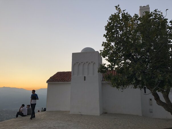 It's called this because most of the houses are painted a light shade of blue, perhaps more of a periwinkle, and so in the evening sun and from the mountains, the entire town kind of glows in a beautiful blue color.