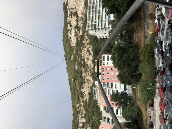 There is a gondola station at the base of the rock and it was entirely empty. We paid for a ride to the top and had the entire gondola to ourselves (and the gondola operator).