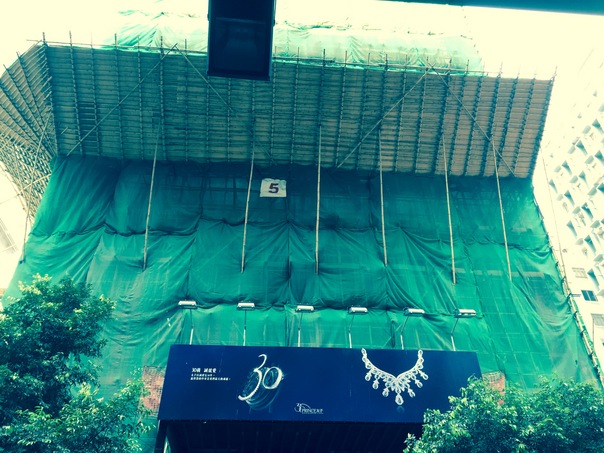 A new building is under construction behind a jewellery shop advertisement