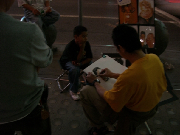 After Eric and Amy had already retired to bed, I went out and about around the city for a few hours. I mostly hung out around time square, but was happy as could be wandering around the streets, eating my soft pretzel, and having caricatures drawn of me.