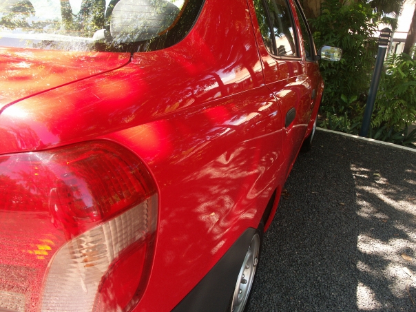 THE CAR IS A REFLECTION OF CANDY RED THOUGHTS.