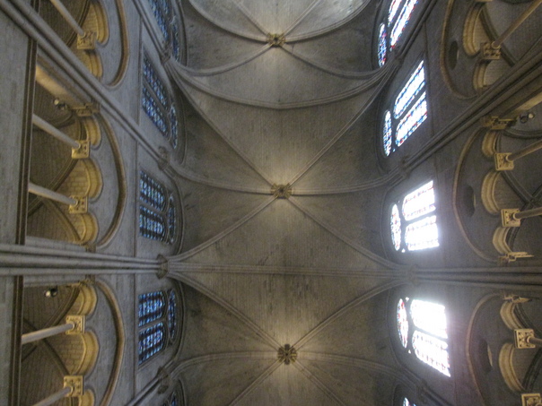 This is a photo of the inside of a cathedral which has large arches and stained glass windows. |