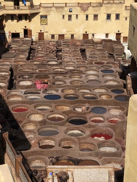 Fes was also famously known for its tanneries. As is somewhat common for getting tourists to come in, some young kid ran up to us in the street and asked us if we wanted to see his father's tannery. As we did want to see one, we decided to follow him. It was a wonderful experience.