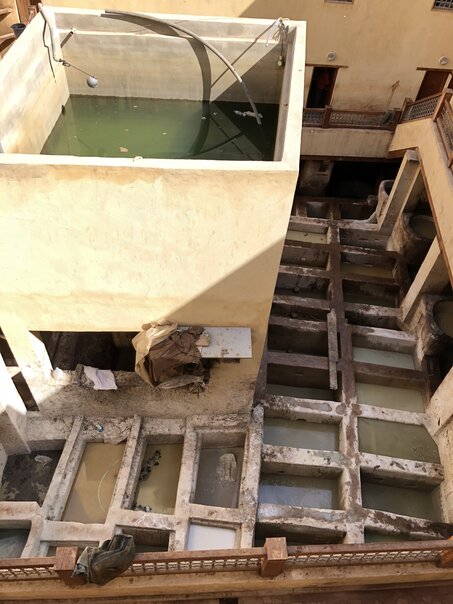 Fes was also famously known for its tanneries. As is somewhat common for getting tourists to come in, some young kid ran up to us in the street and asked us if we wanted to see his father's tannery. As we did want to see one, we decided to follow him. It was a wonderful experience.