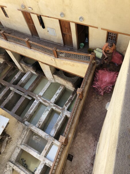 Fes was also famously known for its tanneries. As is somewhat common for getting tourists to come in, some young kid ran up to us in the street and asked us if we wanted to see his father's tannery. As we did want to see one, we decided to follow him. It was a wonderful experience.