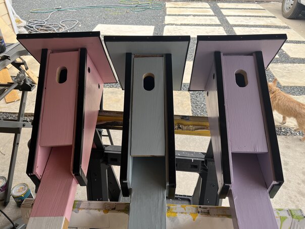 Nevertheless, I was able to finish the final touches on the birdhouses and prepare them for transport to Claire's house in Asheville.