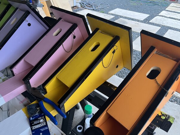 Nevertheless, I was able to finish the final touches on the birdhouses and prepare them for transport to Claire's house in Asheville.