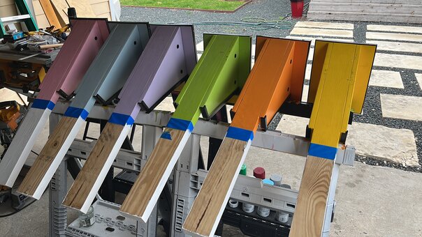 Before heading off on the trip to Asheville, I wanted to make sure that all of the birdhouses were entirely touched up and then I wanted to make sure that the stems were painted so that they would last forever (without the wood rotting out).