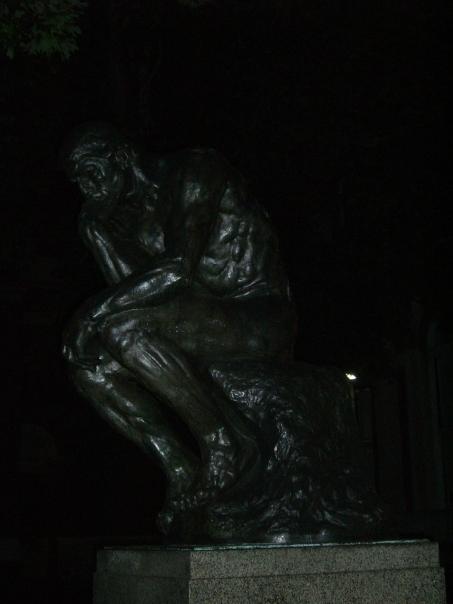 I can only guess this may be a black-out photo of the staute "The Thinker". Picture is too dark.