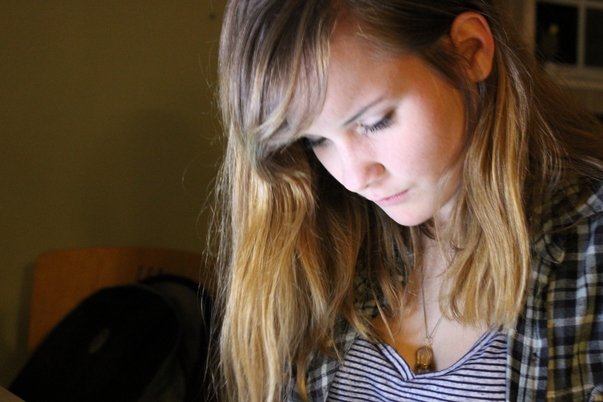 She pensively studied the results of the pregnancy test as she was in disbelief about the results.