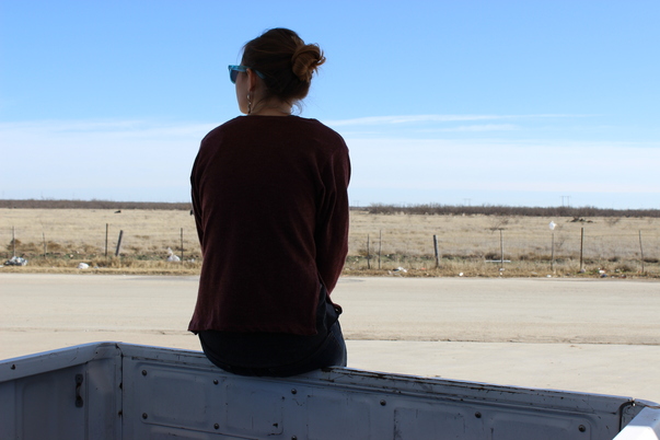 this young woman is sitting, and looking at the nature scene around her.