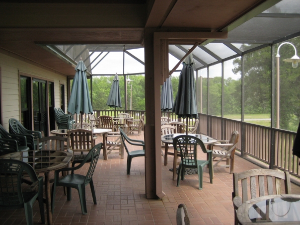 This is an outdoor seating area with a bunch of empty chairs.