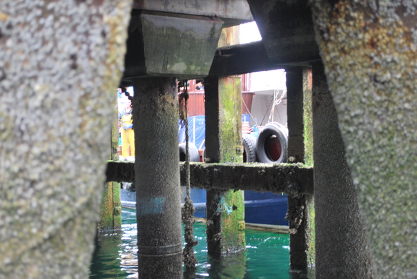 Underneath the pier, the mossy lichens and flora grew with vigor from the rising and falling tides.