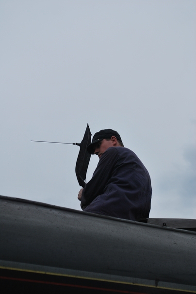 This man is on top of a roof trying to adjust a satellite dish on the low evening light.