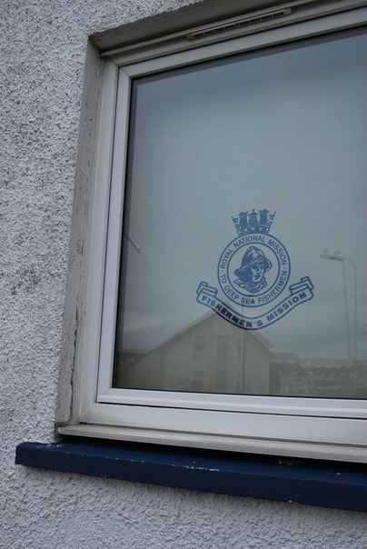A window displays the emblem of a group devoted to helping deep sea fisherman.