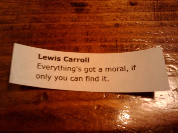 This appears to be a quote from Lewis Carroll, it is difficult to tell what the paper is on.