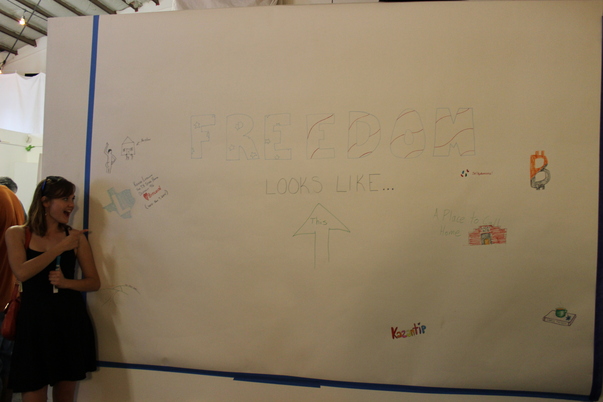 There is a white board that has the word Freedom written in big letters.