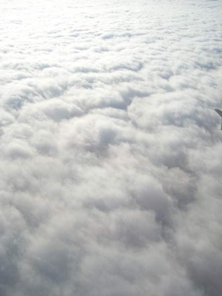 A photo taken from above the fluffy continuous clouds