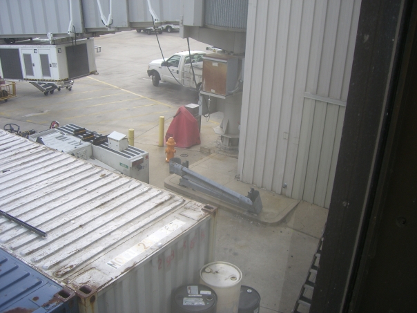 This is a loading station. It might be an airline terminal based on the fuel barrels.