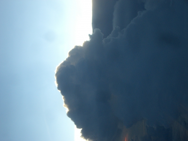 Thick heavy grey rain clouds gearing up for a thunderstorm.
