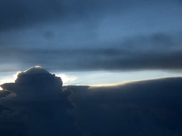 A variety of interestingly-shaped clouds, probably at sunset, or close to it