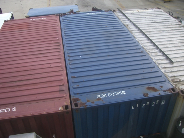 The ship's cargo containers were made of durable steel and painted either red, white or blue.