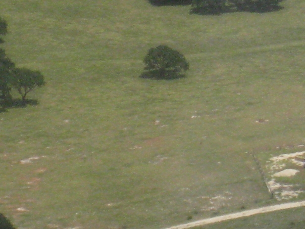 There is a picture of a field with a bush in the middle of it.