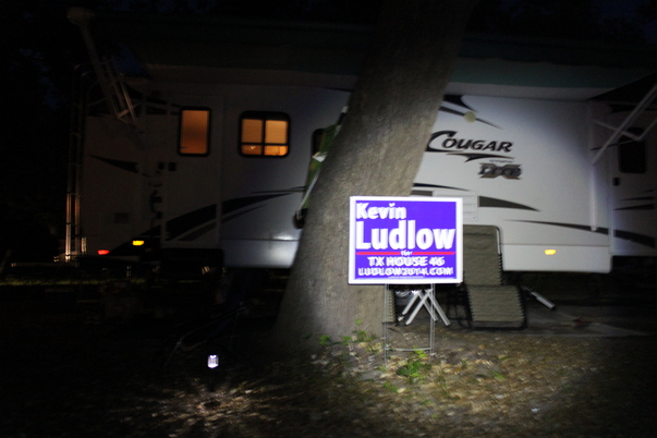 THIS IS A PICTURE OF A CAMPER AND KEVIN LUDLOW'S SIGN