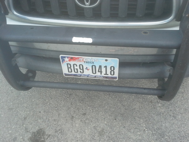This is a car with a blue liscene's plate in the front of it.
