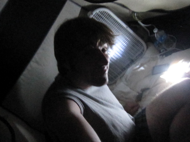 So, I engineered up a crafty one-person tent with dual fans, a built in window-unit A/C, and all sorts of other fixings (including internet complete with Netflix).