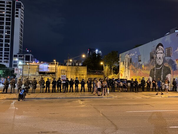 Unfortunately, there were pretty serious consequences and the protests were quickly labeled as "riots" by APD. It's unclear to me if there was justification for that or not, but the term led to a use of force by APD. Many people, including some from the media, were hit with "rubber" bullets, pepper spray, tear gas, and worse. I believe one young man even lost his eye. Others were rendered unconscious from the impact of "less-than-lethal" munitions.