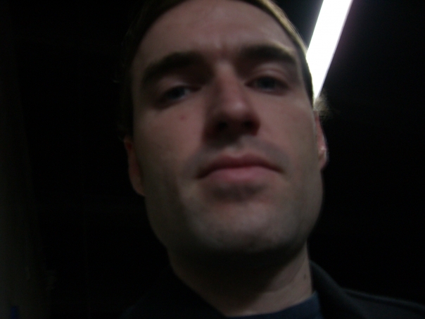 Very close-up, clean shaven, dark-haired man looking into camera with a serious expression. Straight light in the background.
