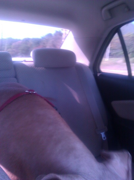 The resemblance of a moving dog in a spacious vehicle with a bright sun entering the windows. |