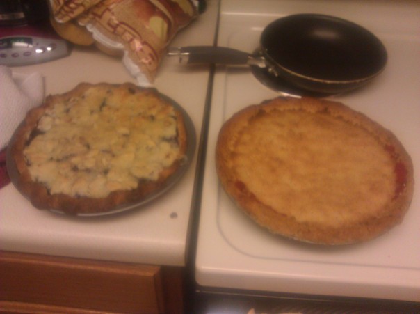 There are two quiches that were placed on the counter to cool off after being baked. |