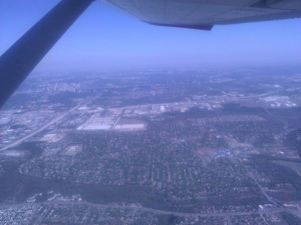 Buildings seem tiny in this shot taken from an airplane. |