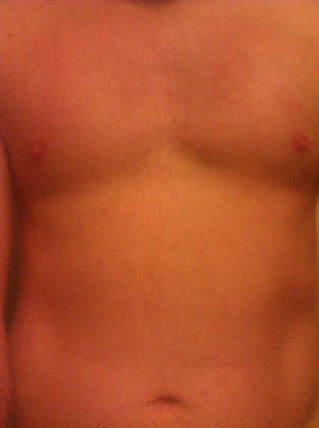 A caucasian man's chest that doesn't have any hair on it. |