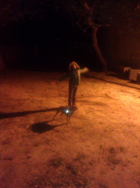 A person is standing in the middle of land at night by their self |