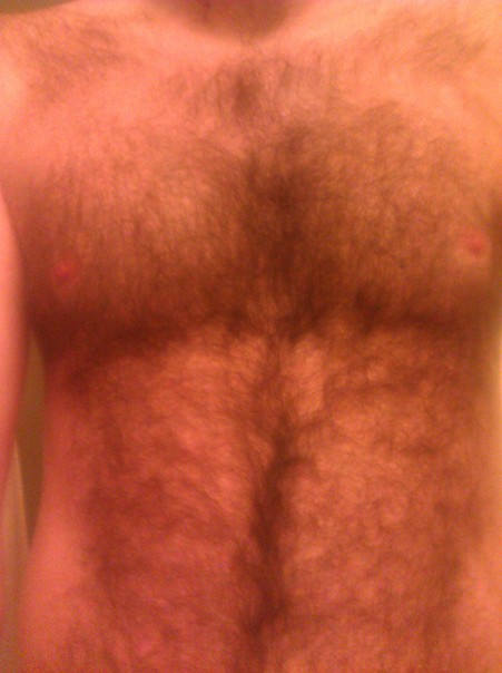 This man has a fuller chest of hair on his body. |