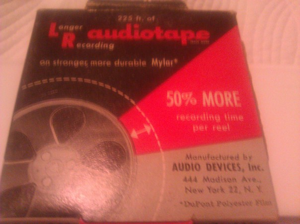 A audio recording device or tape, red and black cover. |