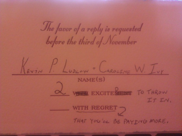 The form for the reception had writing on it in addition to the text that is traditionally there. |