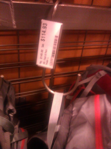 The price tag for the backpack item is shown above . |