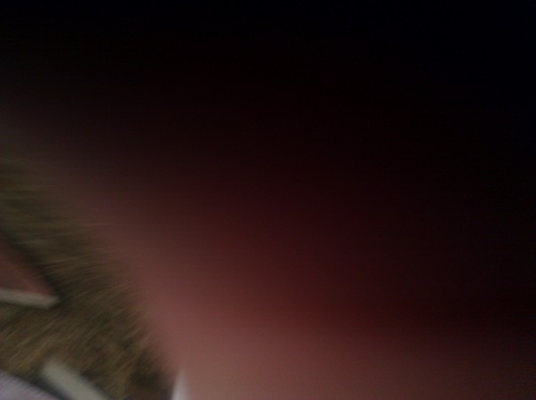 A blurry picture showing what looks like some brown hair or fur on the lower left corner of the picture. |
