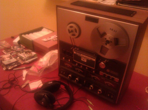 This silver and black colored machine appears to be some kind of old fashioned audio device. |
