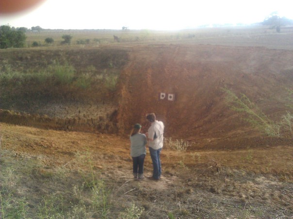 A blue jean-clad couple observe the muddy and rough landscape they one day will call home. |