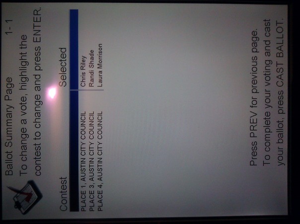 It is a computer screen shot of election process of ballot summary in Austin city. |