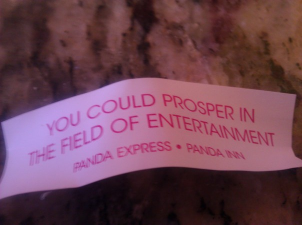 This is a picture of a fortune cookie that has a saying on it